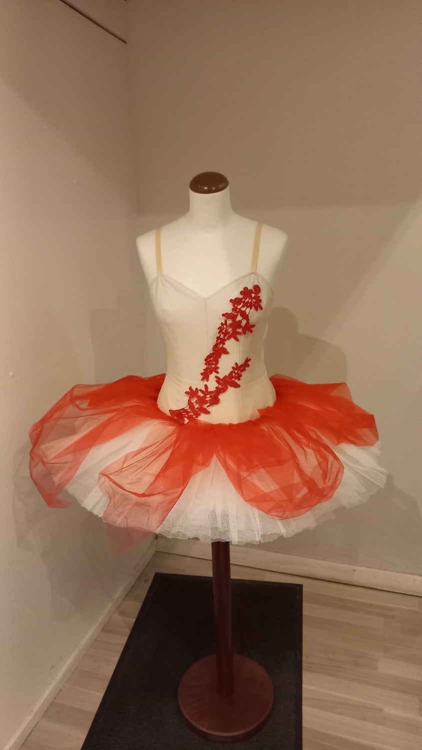 Vuokraus, tanssipuku valkoinen/punainen tutu