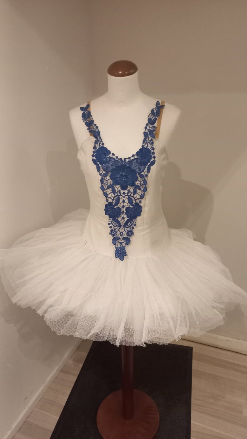 Vuokraus, tanssipuku valkoinen/sininen tutu