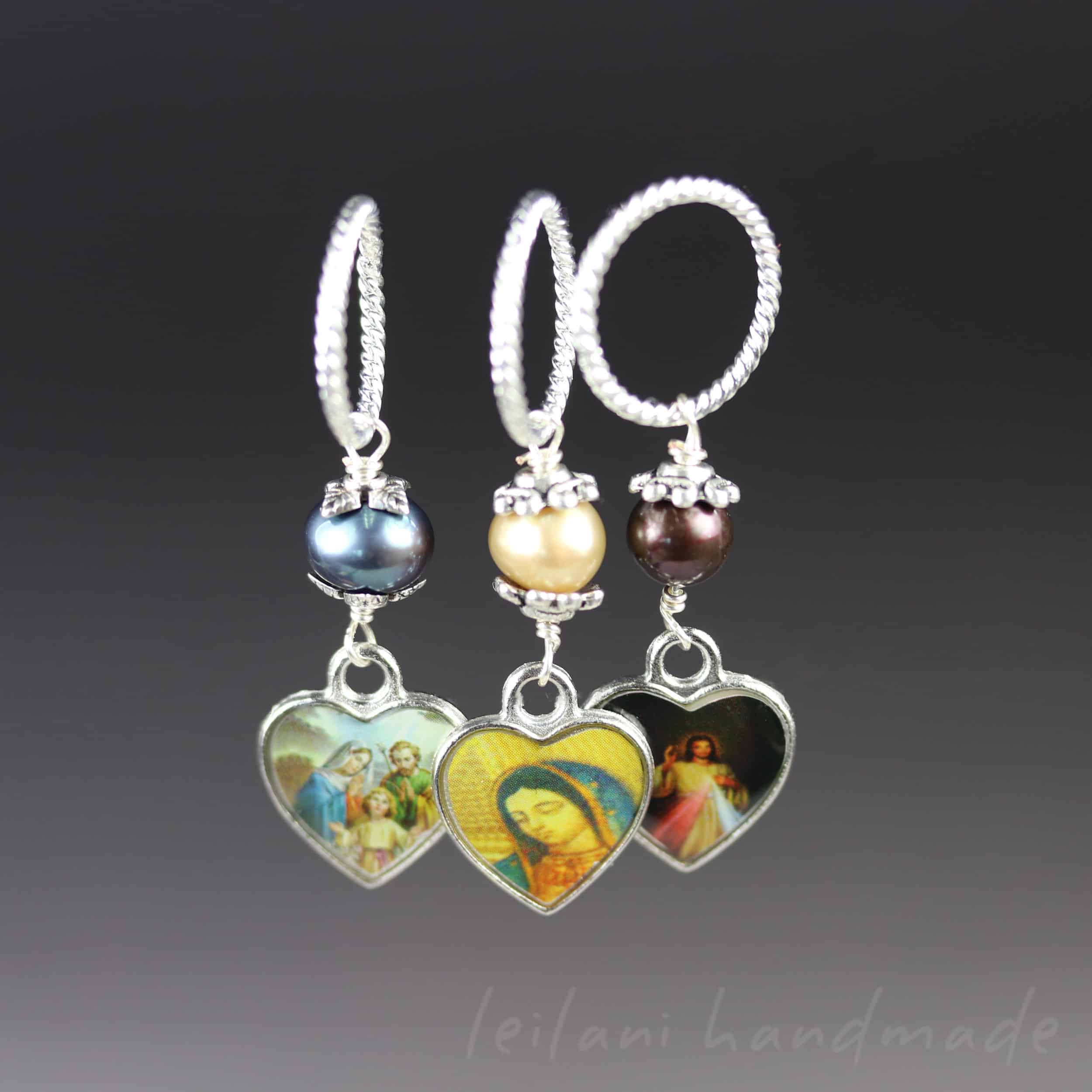 Catholic Art Stitch Markers with Silver Heart